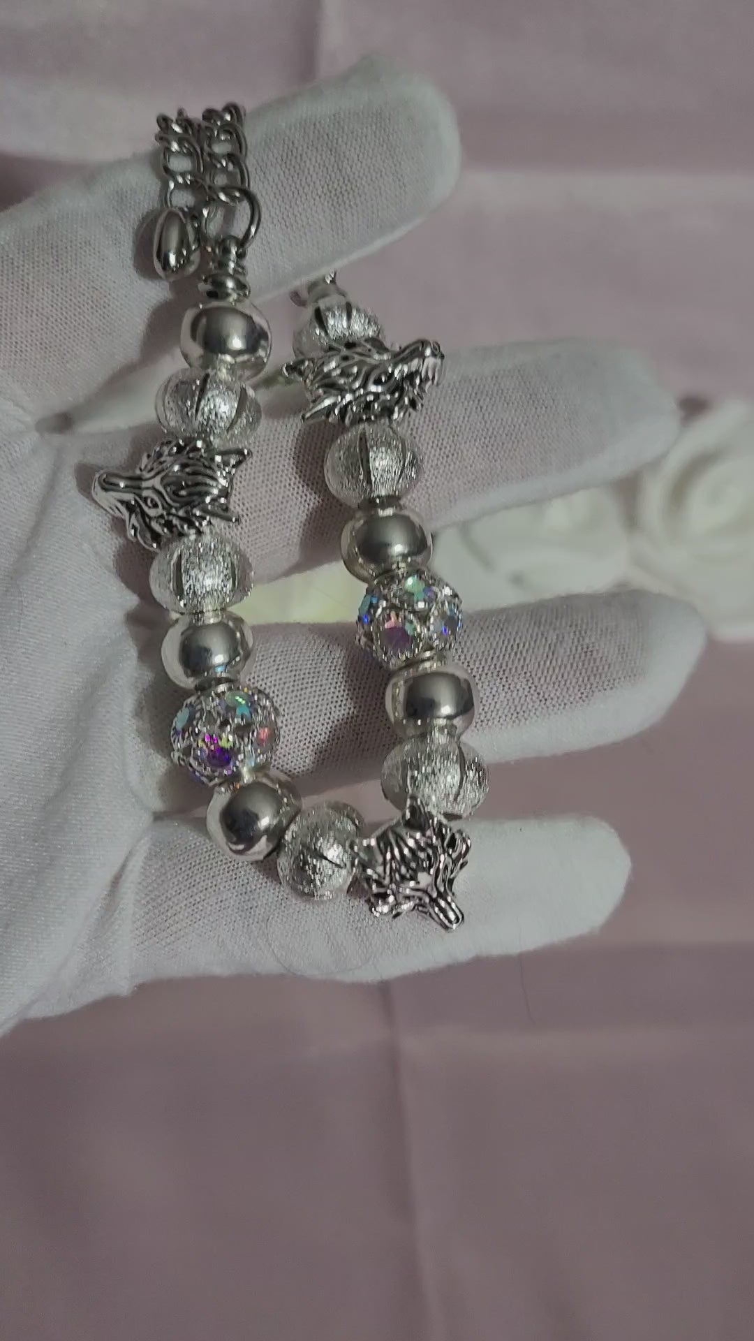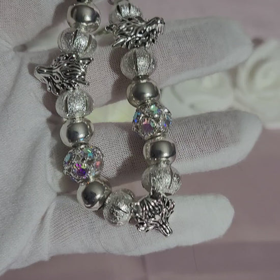 This striking silver wolf bracelet combines artisanal craftsmanship with timeless elegance. Each piece is custom-made using quality materials that catch the light beautifully, creating an eye-catching sparkle. The detailed wolf design serves as a sophisticated statement piece that naturally draws admiration and conversation. Perfect for those who appreciate distinctive jewelry that reflects both style and individuality, this bracelet elevates any ensemble while showcasing exceptional quality and attention to detail.